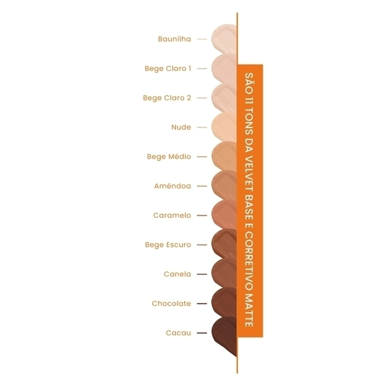 A nova Base e Corretivo Velvet Skin combina um acabamento aveludado e proporciona cobertura média à alta, possui longa duração e ajuda a minimizar as imperfeições.